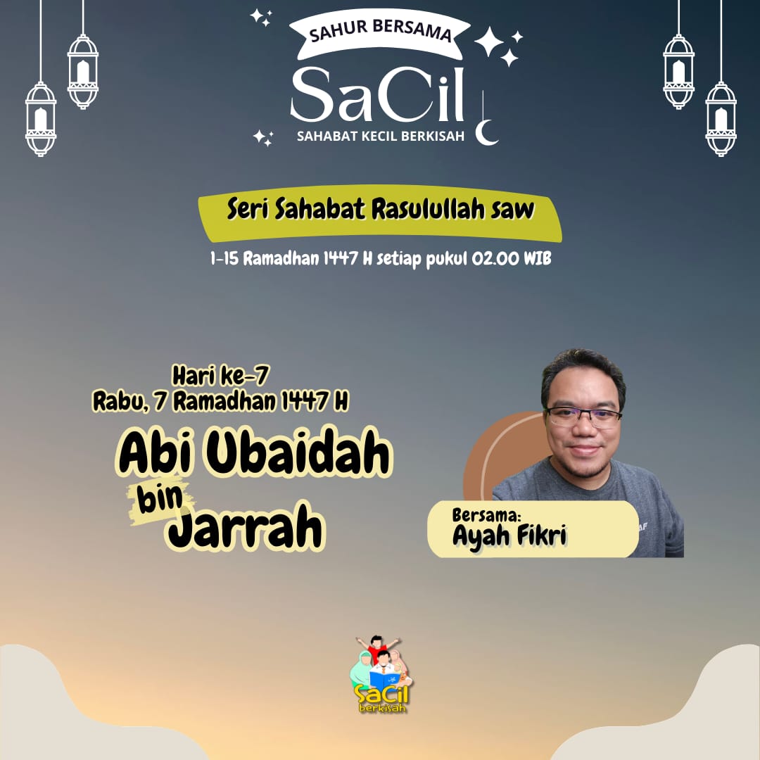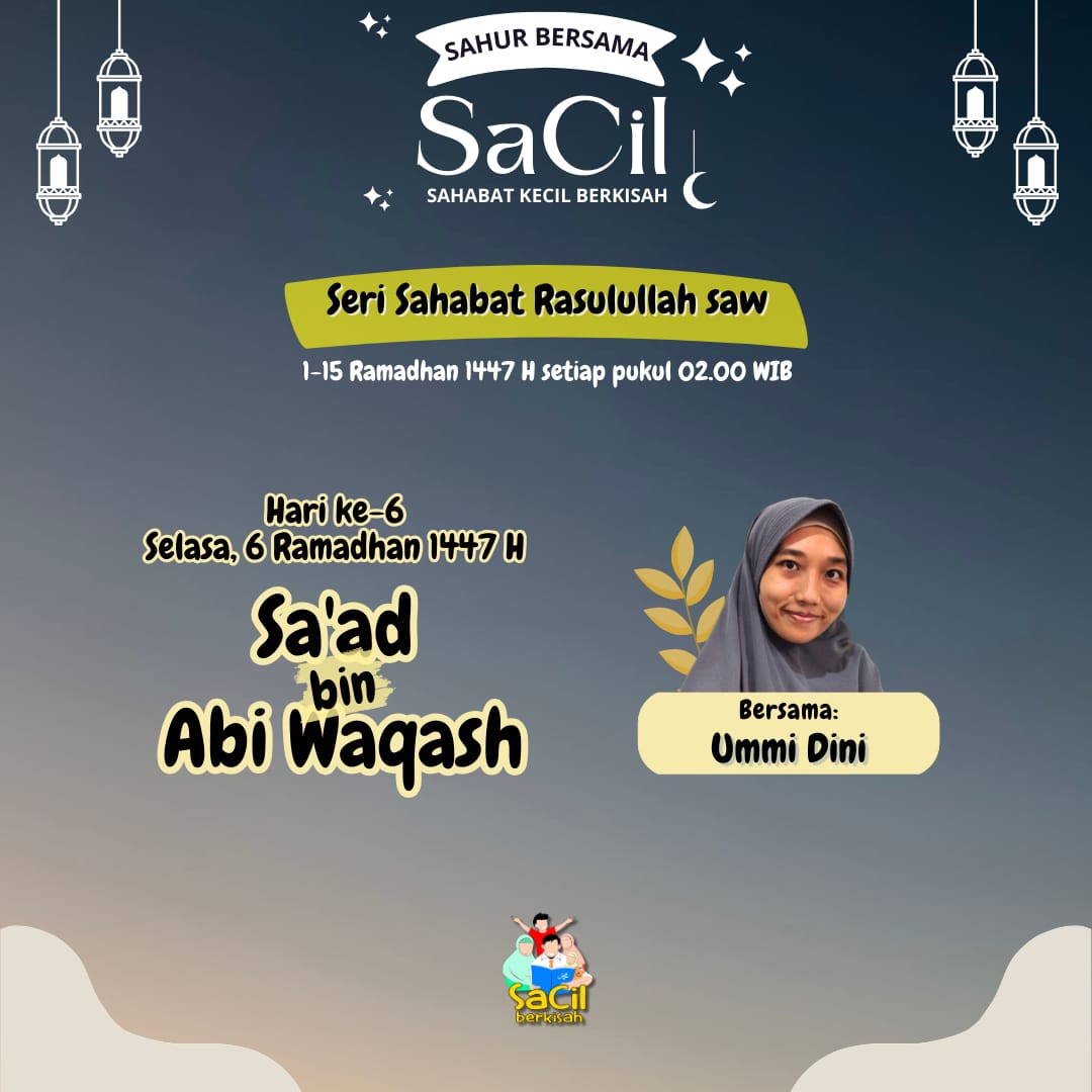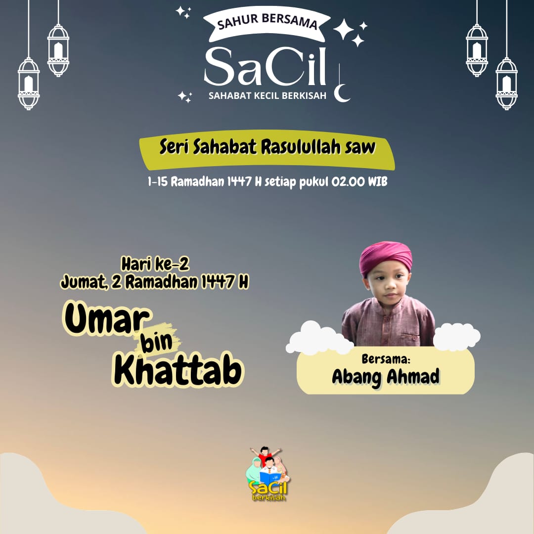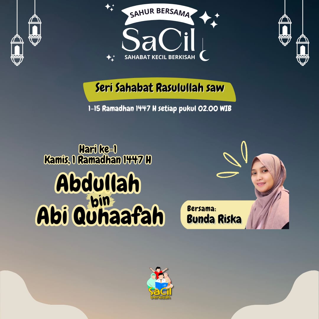 Sahur Bersama SaCil Materi Hari Ke-1 | Abdullah bin Abu Quhaafah Materi Hari Ke-1 | Abdullah bin Abu Quhaafah on 19 February, 2026 Materi Hari Ke-2 | Umar bin Khattab Materi Hari Ke-2 | Umar bin Khattab on 20 February, 2026 Materi Hari Ke-3 | Utsman bin Affan Materi Hari Ke-3 | Utsman bin Affan on 21 February, 2026 Materi Hari Ke-4 | Ali bin Abu Thalib Materi Hari Ke-4 | Ali bin Abu Thalib on 22 February, 2026 Materi Hari Ke-5 | Zubair bin Awwam Materi Hari Ke-5 | Zubair bin Awwam on 23 February, 2026 Materi Hari Ke-6 | Saad bin Abi Waqqash Materi Hari Ke-6 | Saad bin Abi Waqqash on 24 February, 2026 Materi Hari Ke-7 | Abu Ubaidah bin Jarrah Materi Hari Ke-7 | Abu Ubaidah bin Jarrah on 25 February, 2026 Materi Hari Ke-8 | Hudzhaifah bin Yaman Materi Hari Ke-8 | Hudzhaifah bin Yaman on 26 February, 2026 Materi Hari Ke-9 | Abu Ayyub Al Anshari Materi Hari Ke-9 | Abu Ayyub Al Anshari on 27 February, 2026 Materi Hari Ke-10 | Said bin Zaid Materi Hari Ke-10 | Said bin Zaid on 28 February, 2026 Materi Hari Ke-11 | Abdullah bin Shakr Materi Hari Ke-11 | Abdullah bin Shakr on 1 March, 2026 Materi Hari Ke-12 | Abdullah bin Abbas Materi Hari Ke-12 | Abdullah bin Abbas on 2 March, 2026 Materi Hari Ke-13 | Salman Al Farisi Materi Hari Ke-13 | Salman Al Farisi on 3 March, 2026 Materi Hari Ke-14 | Khalid bin Walid Materi Hari Ke-14 | Khalid bin Walid on 4 March, 2026 Materi Hari Ke-15 | Mushab bin Umair Materi Hari Ke-15 | Mushab bin Umair on 5 March, 2026