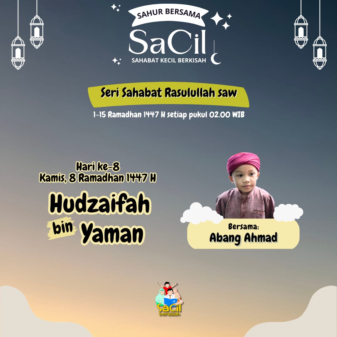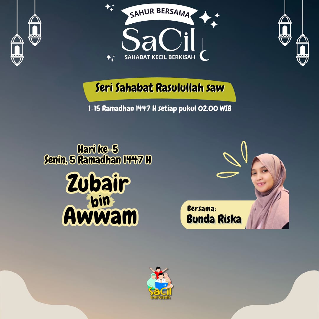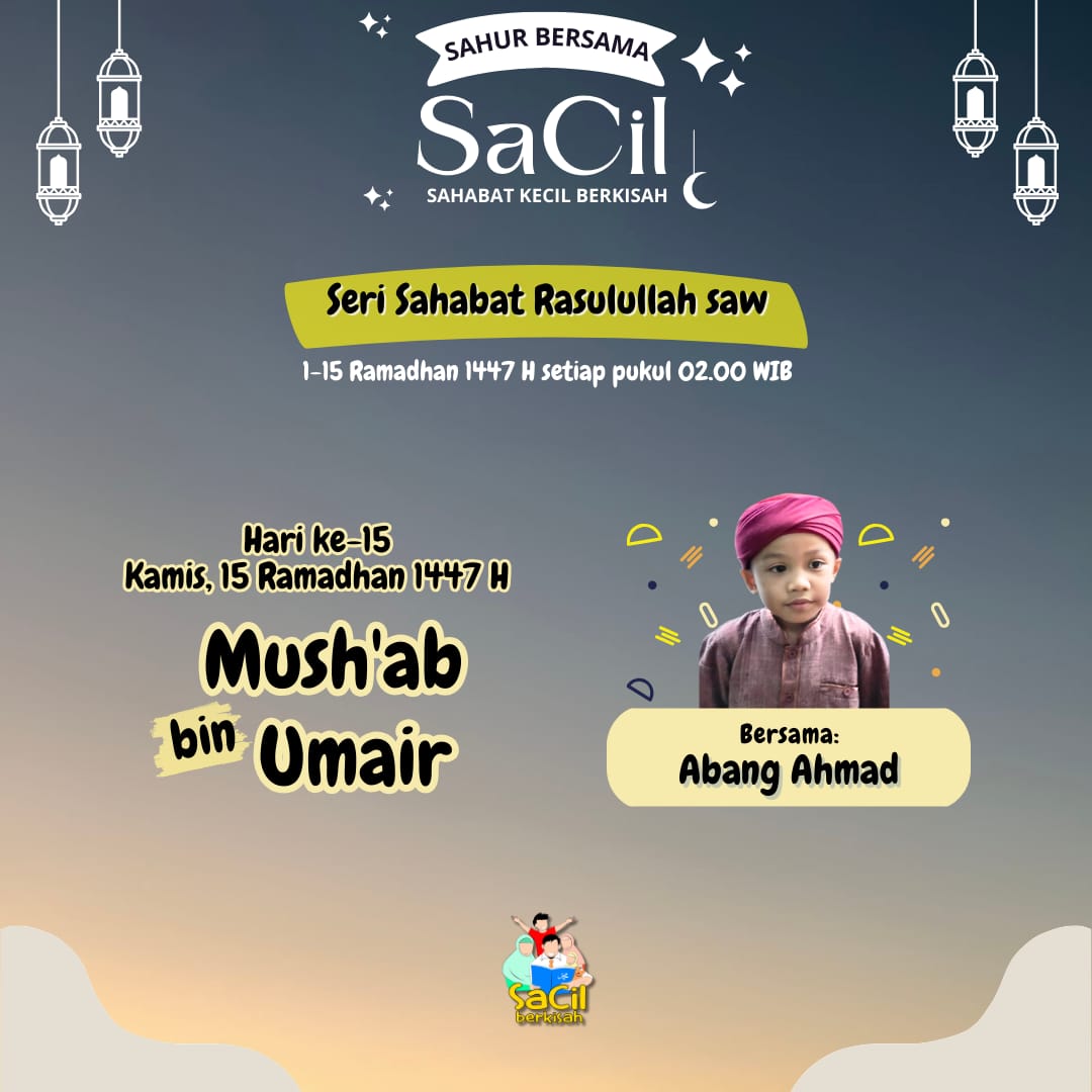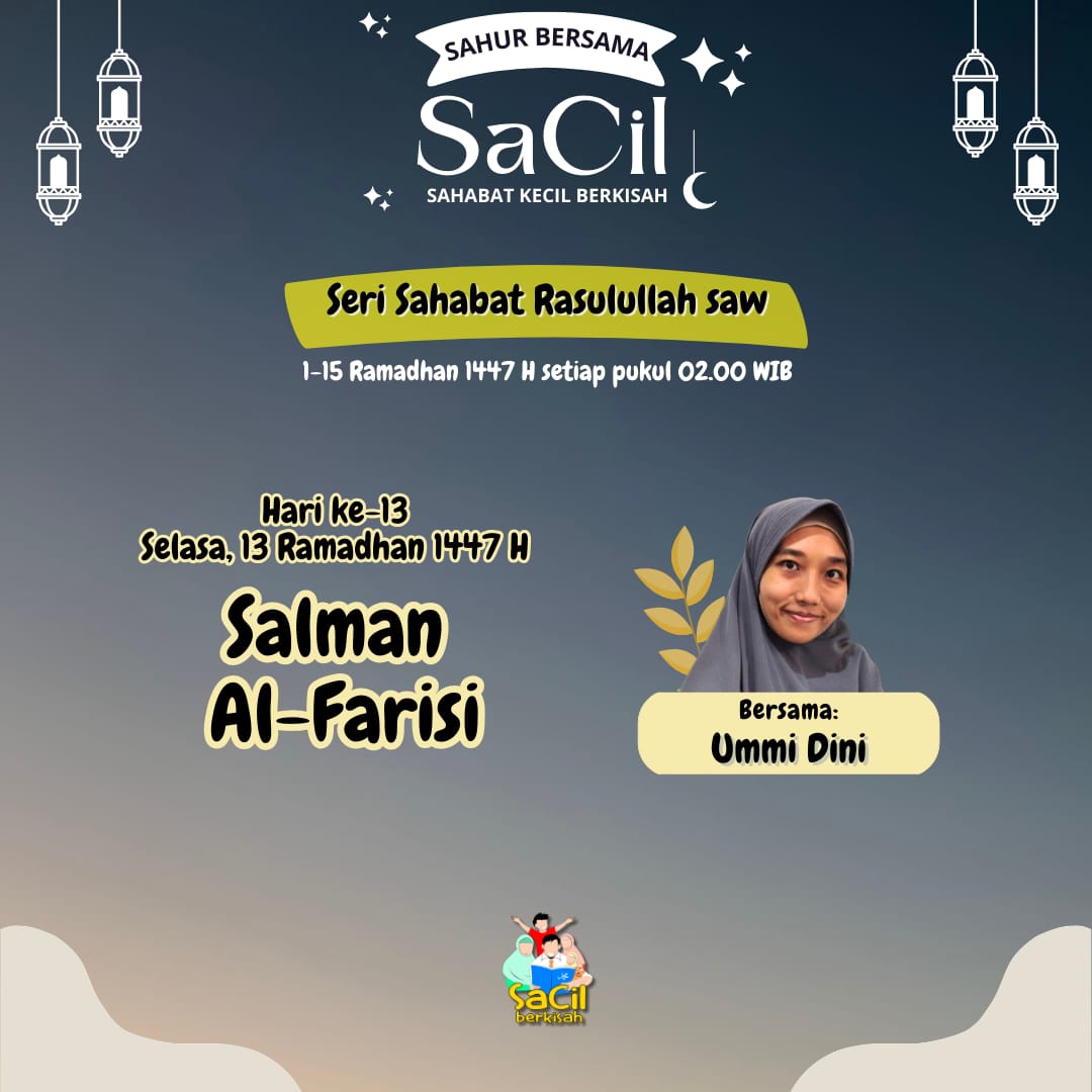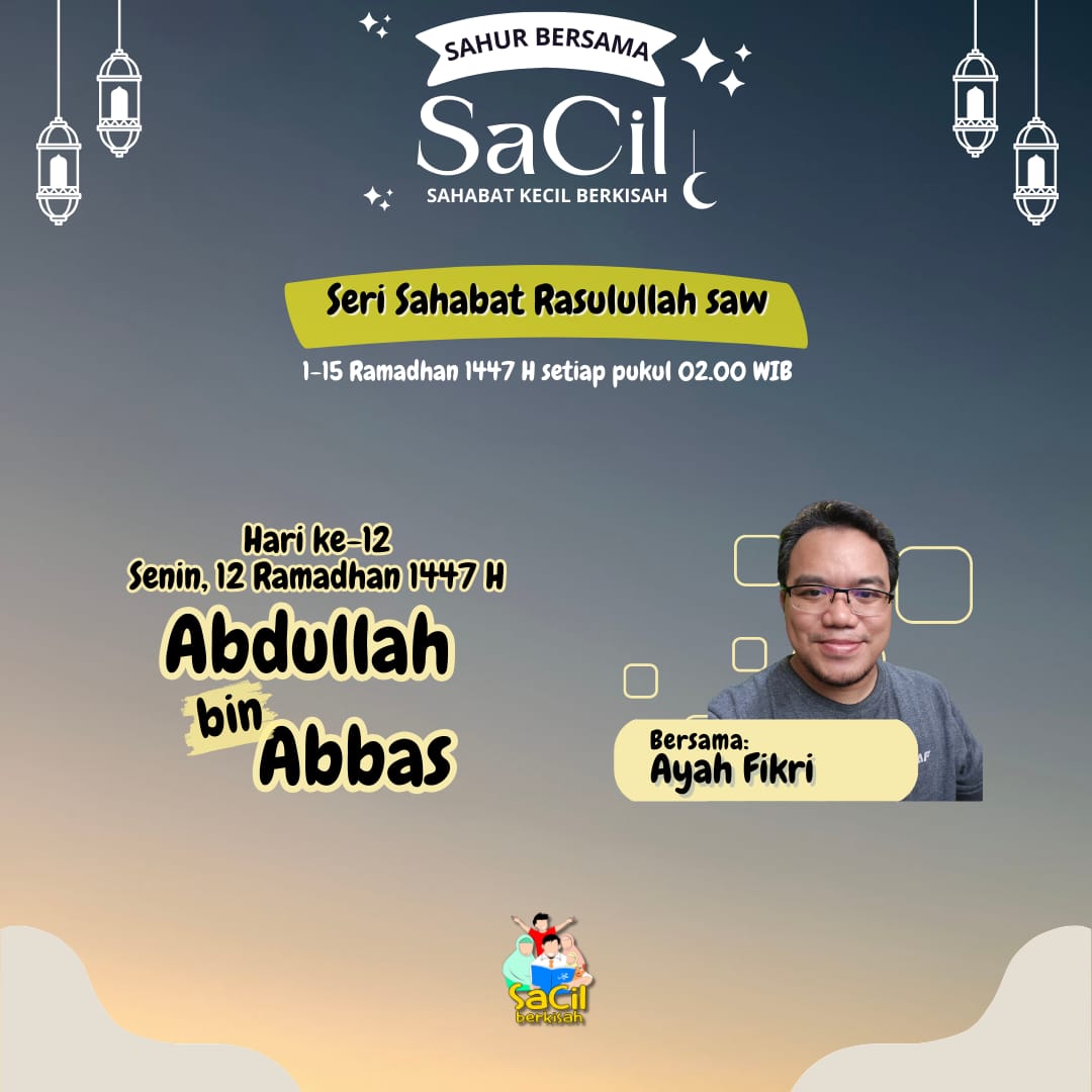 Sahur Bersama SaCil Materi Hari Ke-1 | Abdullah bin Abu Quhaafah Materi Hari Ke-1 | Abdullah bin Abu Quhaafah on 19 February, 2026 Materi Hari Ke-2 | Umar bin Khattab Materi Hari Ke-2 | Umar bin Khattab on 20 February, 2026 Materi Hari Ke-3 | Utsman bin Affan Materi Hari Ke-3 | Utsman bin Affan on 21 February, 2026 Materi Hari Ke-4 | Ali bin Abu Thalib Materi Hari Ke-4 | Ali bin Abu Thalib on 22 February, 2026 Materi Hari Ke-5 | Zubair bin Awwam Materi Hari Ke-5 | Zubair bin Awwam on 23 February, 2026 Materi Hari Ke-6 | Saad bin Abi Waqqash Materi Hari Ke-6 | Saad bin Abi Waqqash on 24 February, 2026 Materi Hari Ke-7 | Abu Ubaidah bin Jarrah Materi Hari Ke-7 | Abu Ubaidah bin Jarrah on 25 February, 2026 Materi Hari Ke-8 | Hudzhaifah bin Yaman Materi Hari Ke-8 | Hudzhaifah bin Yaman on 26 February, 2026 Materi Hari Ke-9 | Abu Ayyub Al Anshari Materi Hari Ke-9 | Abu Ayyub Al Anshari on 27 February, 2026 Materi Hari Ke-10 | Said bin Zaid Materi Hari Ke-10 | Said bin Zaid on 28 February, 2026 Materi Hari Ke-11 | Abdullah bin Shakr Materi Hari Ke-11 | Abdullah bin Shakr on 1 March, 2026 Materi Hari Ke-12 | Abdullah bin Abbas Materi Hari Ke-12 | Abdullah bin Abbas on 2 March, 2026 Materi Hari Ke-13 | Salman Al Farisi Materi Hari Ke-13 | Salman Al Farisi on 3 March, 2026 Materi Hari Ke-14 | Khalid bin Walid Materi Hari Ke-14 | Khalid bin Walid on 4 March, 2026 Materi Hari Ke-15 | Mushab bin Umair Materi Hari Ke-15 | Mushab bin Umair on 5 March, 2026